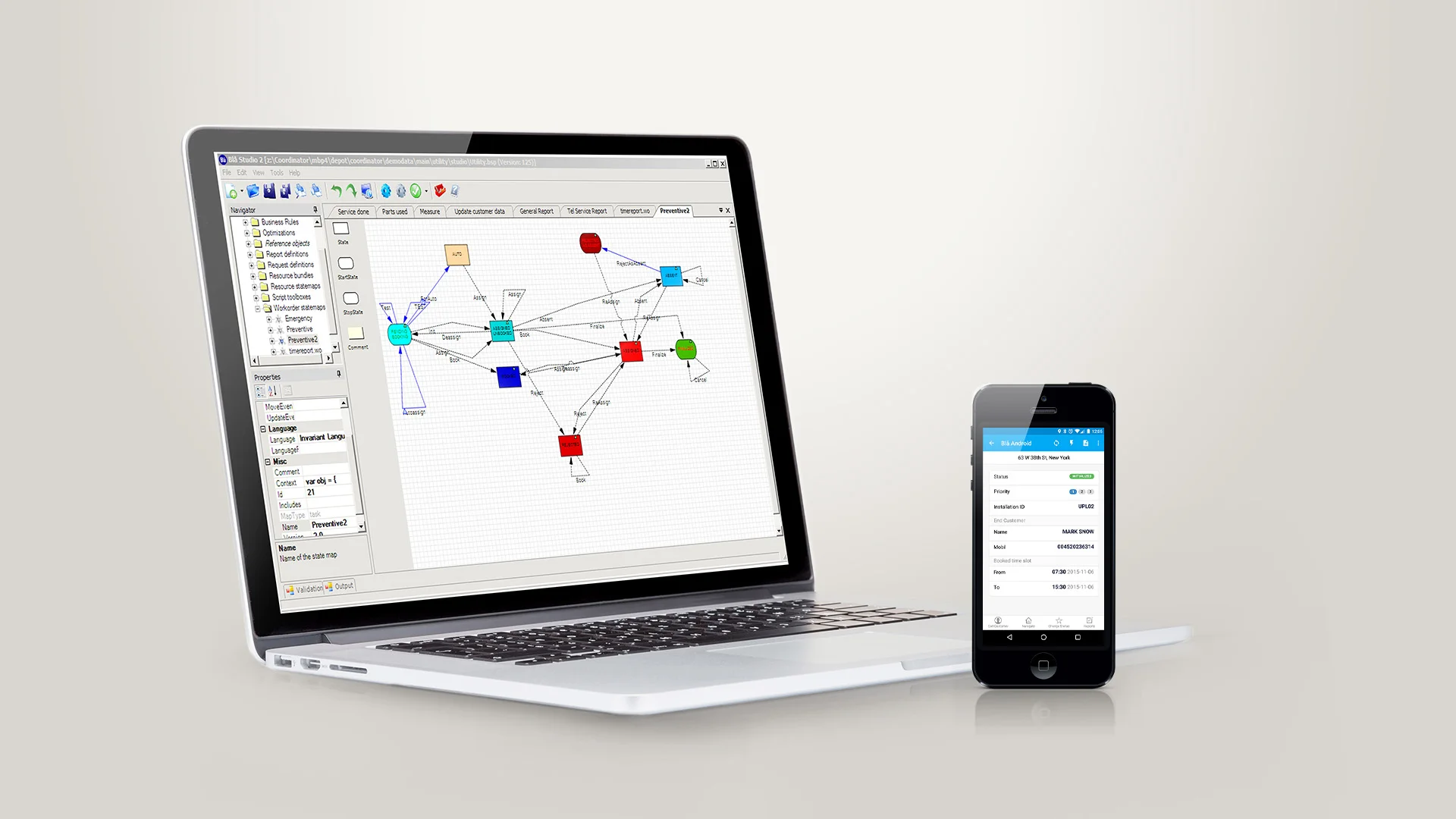 The studio tool provides a rapid drag-and-drop functionality not only during implementation but also when performing business process analyses and design of your field service management solution. With the tool it is possible to build statemaps and report forms on high-level basis without making any code implementation. These entities may then be evaluated with end-users and business process owners directly in the studio tool.